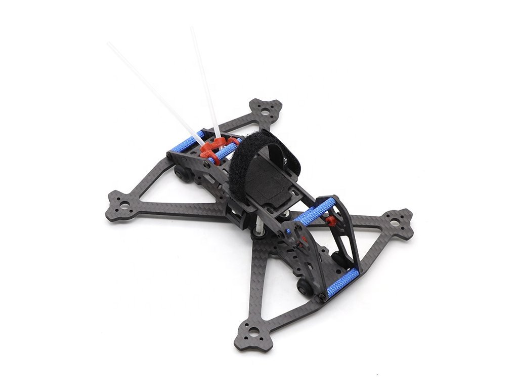 Malý, lehký a odolný rám FPV dronu. Uchycení horní části rámu je přes softmounty, které pohlcují vibrace během letu, které by ovlivňovaly HD záznam kamery.