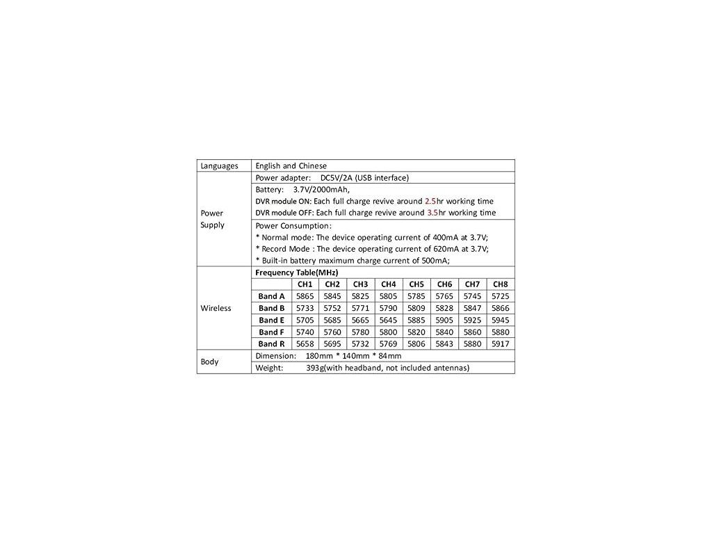- 1 x EV800D 40CH 5,8G diverzitní brýle s baterií