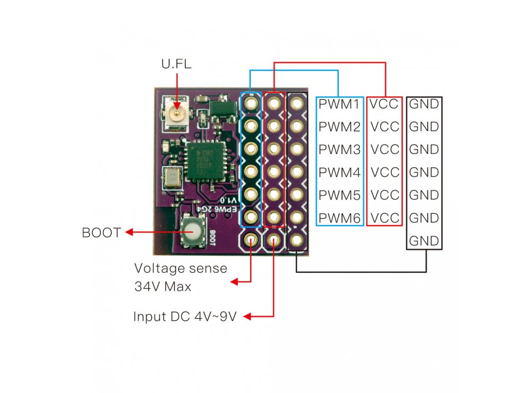 Zieloption1: Generischer ESP8285 6xPWM 2.4Ghz RXPWM Empfänger über 1~6 PWM Ausgänge