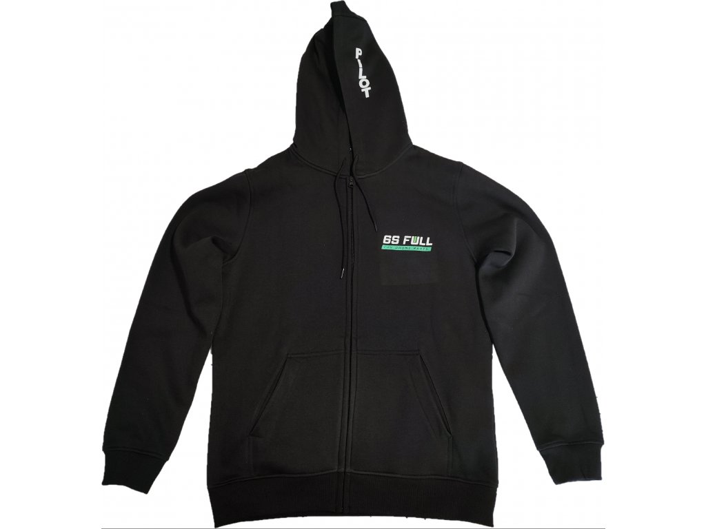 Hochwertiges, warmes Sweatshirt mit Reißverschluss mit JUST ONE MORE LIPO Motiv auf dem Rücken, 6SFULL Logo auf der Vorderseite und PILOT auf der Kapuze