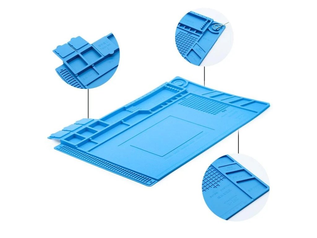 Die Sequre Silikon-Arbeitsmatte ist eine robuste und flexible Arbeitsunterlage aus hitzebeständigem Silikon, entwickelt für Elektronik, Drohnenbau, RC-Modelle und präzise Montagearbeiten. Diese Version mit den Maßen 450×300×16 mm bietet eine magnetische Arbeitsfläche, Hitzebeständigkeit bis 500 °C, antistatische Beschichtung und praktische Rillen zur Organisation von Schrauben und Kleinteilen. Durch ihre stabile und rutschfeste Oberfläche eignet sie sich perfekt für Löt- oder Reparaturarbeiten.