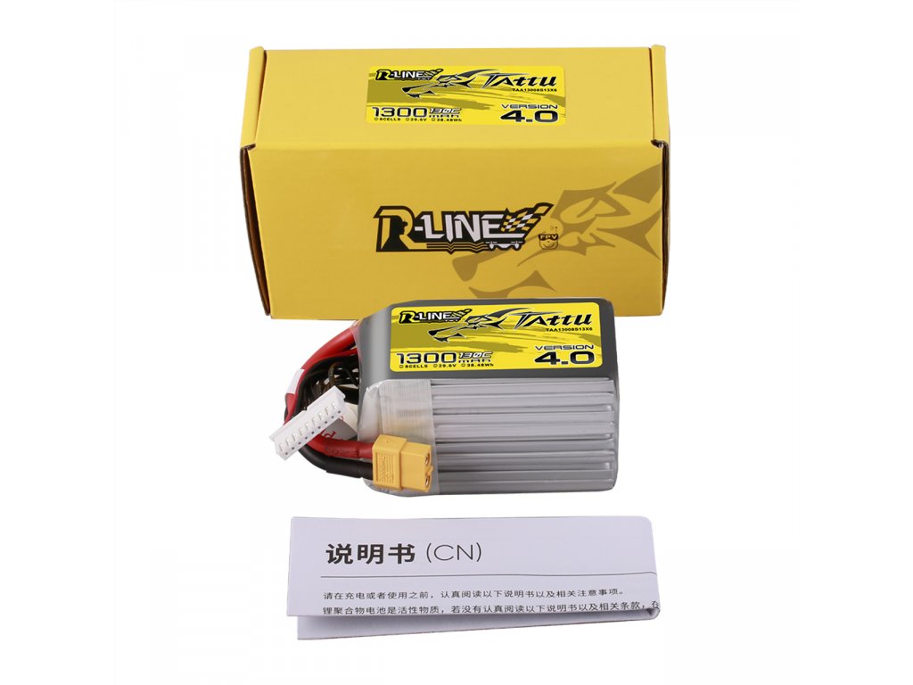 Tattu R-Line Version 4.0 1300mAh 8S 29,6V 130C LiPo-Akku dominiert definitiv alle FPV-Rennen und Hardcore-Freestyler. Er bietet mehr Punch, einen geringeren Innenwiderstand und weniger Gewicht.