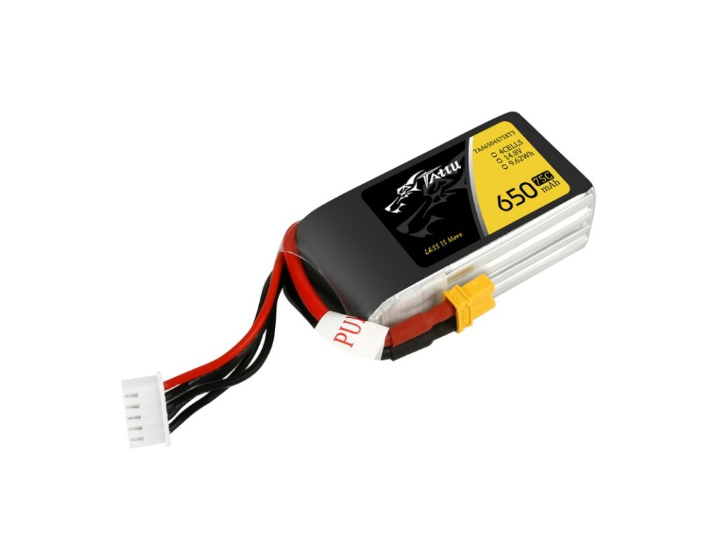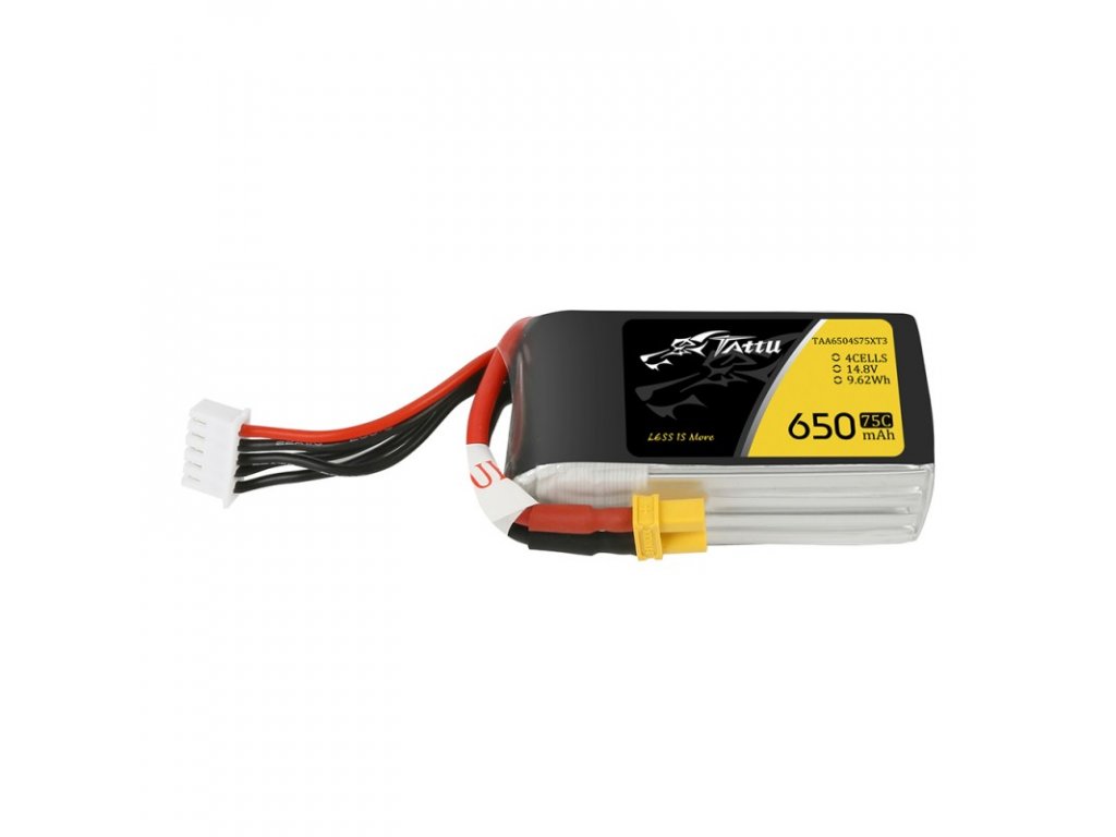 Tattu 650mAh 4S 75C Lipo-Batterien bieten hohe Qualität, 650mAh Kapazität gibt Ihnen genug Energie, um Ihre UAV und FPV fliegen. Sie sind sehr kompakt in Größe und Gewicht, ideal für kleine UAV/FPV Drohnenrahmen.