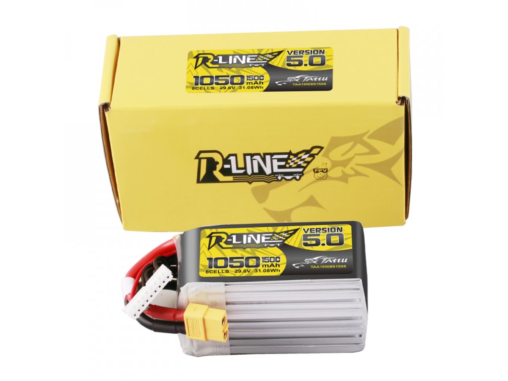 - Tattu R-Line Version 5.0 1050mAh 8S 150C 29.6V Lipo Akku ist geeignet für 3'', 4'', 5" Freestyle und Racing FPV Drohnen.