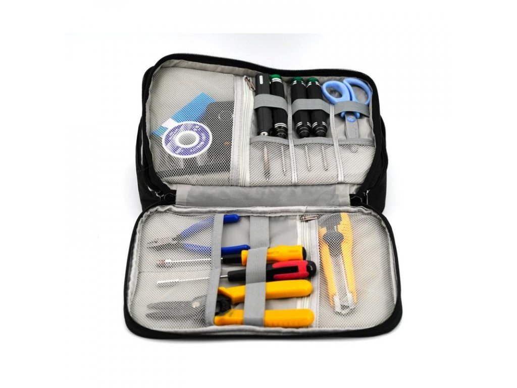 V2 hat 2 Fächer, eine Seite hat ein flexibles System und kleine Taschen für die Aufbewahrung von Kabeln, Werkzeugen, Lötwerkzeugen, Antennen usw.