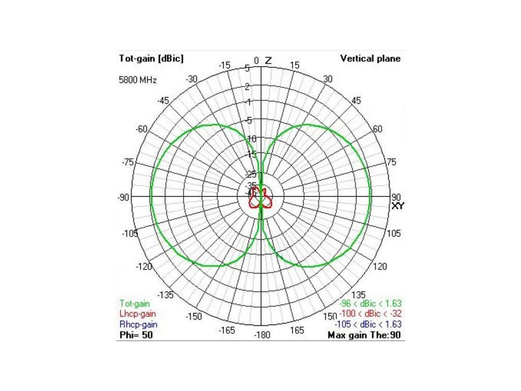Frequenzbereich: 5500 - 6000 MHz Polarisation: RHCP Verstärkung: 1,6 dB Achsverhältnis: 0,99 Kabel: RG405/U Gewicht: 2-3 g Höhe: 85 mm Anschluss: u.FL