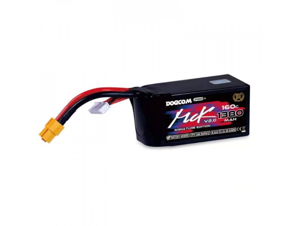 Objevte značku Dogcom a její vysoce kvalitní a stabilní Lipo baterie. Zde je druhá verze edice 6S 1380mAh MCK s vybíjecím proudem až 160C pro vaše závodní i freestyle FPV drony.
