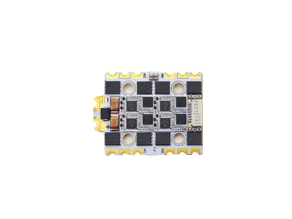 The ESC delivers a continuous current of 70 A per channel (for up to 30 seconds) and peak current of 100 A, handling even the most demanding flight conditions. Clean power delivery and voltage-spike isolation protect the flight controller electronics from brownouts or damage. A conformal coating shields against moisture, dust, and corrosion, while dual-sided solder pads allow flexible installation in various frame types.