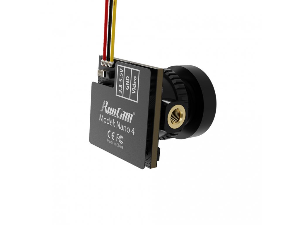 The Runcam Nano 4 FPV camera is especially suitable for whoopas and smaller FPV drones where the weight of 2.9grams is a consideration. The image is fixed 4:3 in NTSC mode.