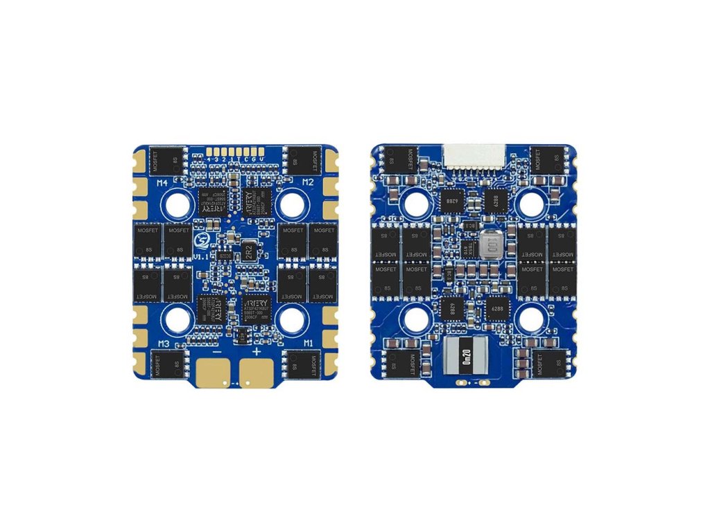 The Sequre Blueson A1 70A is a high-performance and reliable 4-in-1 electronic speed controller designed for demanding racing and freestyle drones. With support for up to 70 A per channel and a power input range of 2–8S LiPo batteries, it is ideal for extreme builds where excellent value meets high performance. Inside you’ll find a 32-bit AT32F421 processor running the modern AM32 firmware, which ensures fast response, stable operation, and advanced motor control options. The ESC features an integrated current sensor and telemetry, giving pilots full insight into performance and system status. The mounting pattern is 20 × 20 mm, making it compatible with standard drone frames.