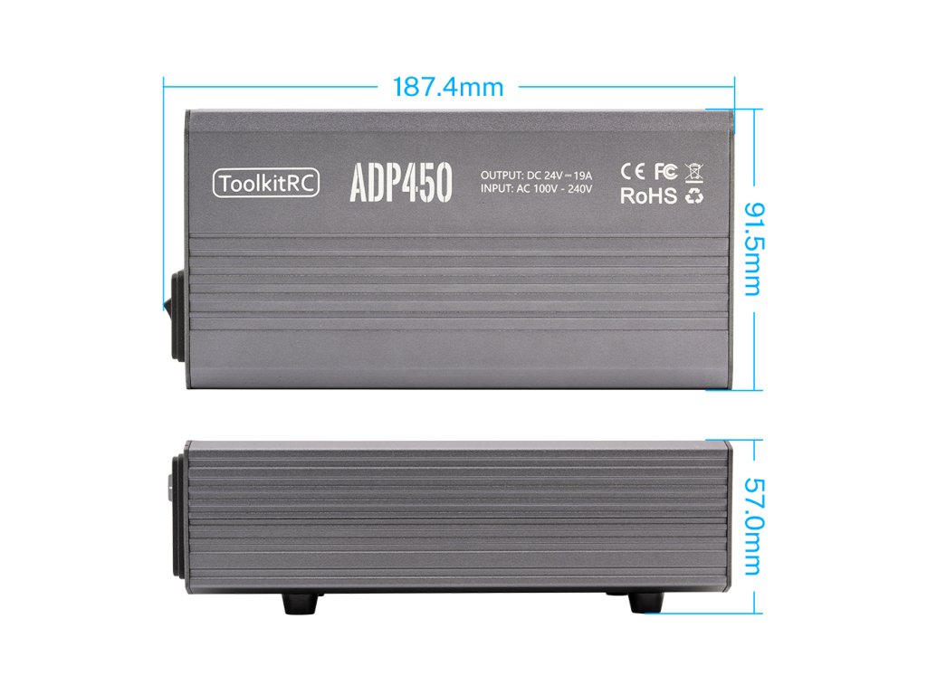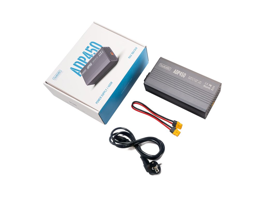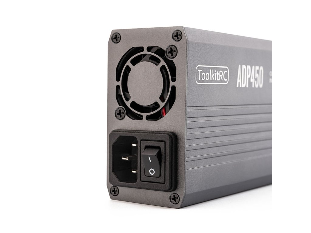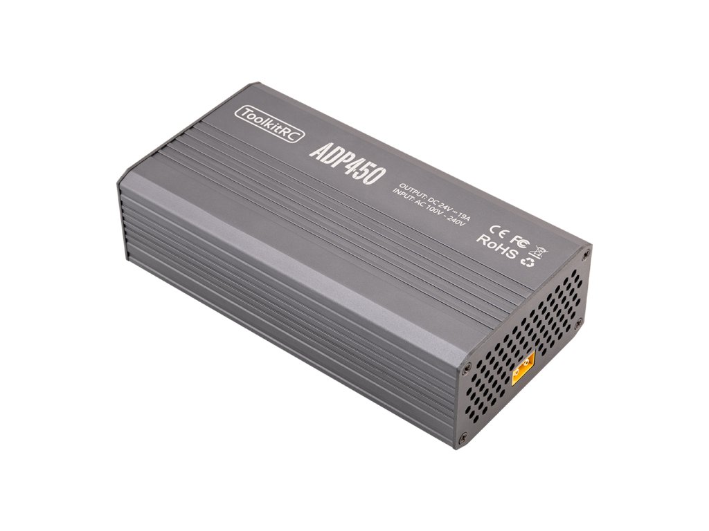 The ToolkitRC ADP450 is a reliable and powerful DC power supply designed for powering chargers, laboratory equipment, and other electronics. With an output voltage of 24 V, current up to 19 A, and a total output of 450 W, it ranks among the most powerful models in the ToolkitRC lineup.