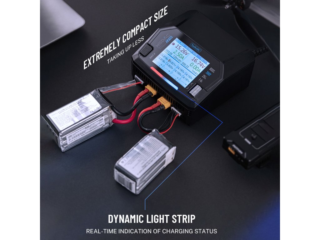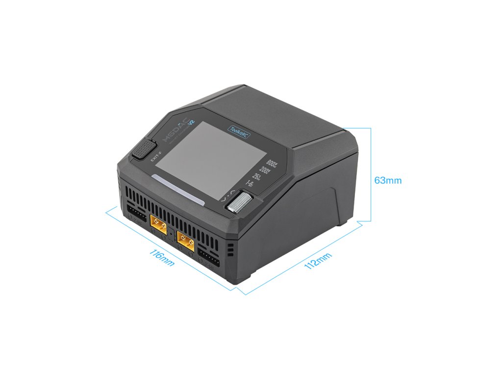 - Battery Support: LiPo, LiHV, LiFe, Li-ion, LTO (1–6S), NiMH (1–16S), Pb (1–10S)