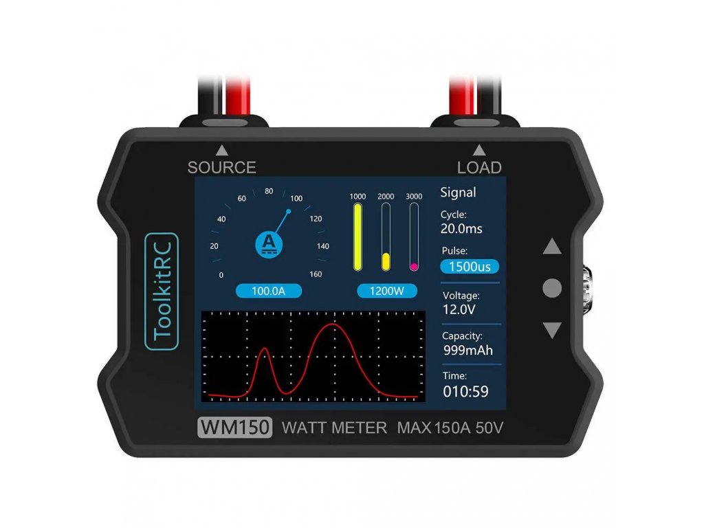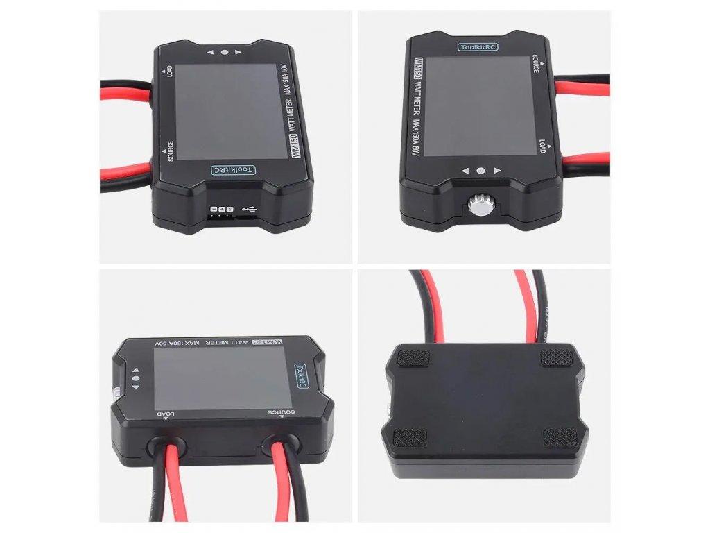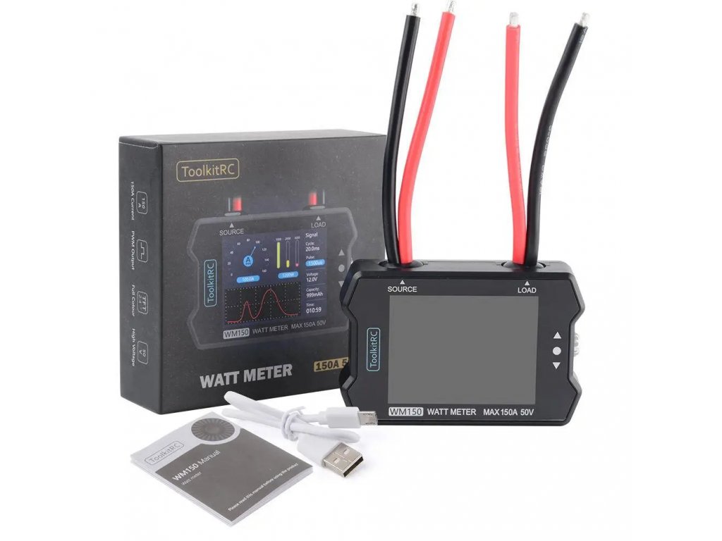 - ToolkitRC WM150 is a wattmeter that is capable of testing voltage, power, current data of electrical equipment such as servo, ESC, battery etc.