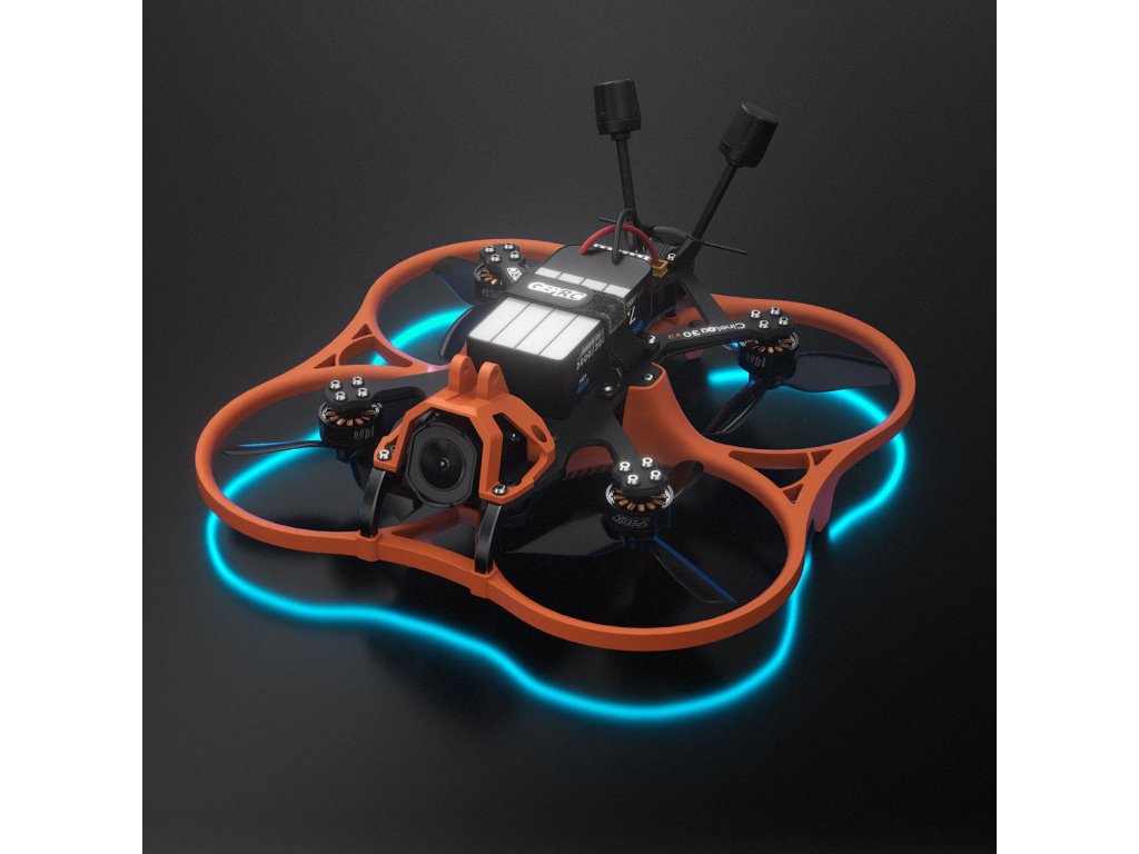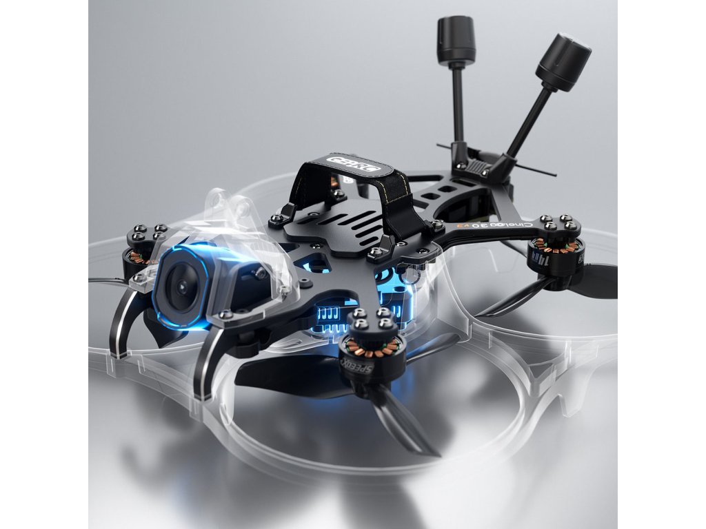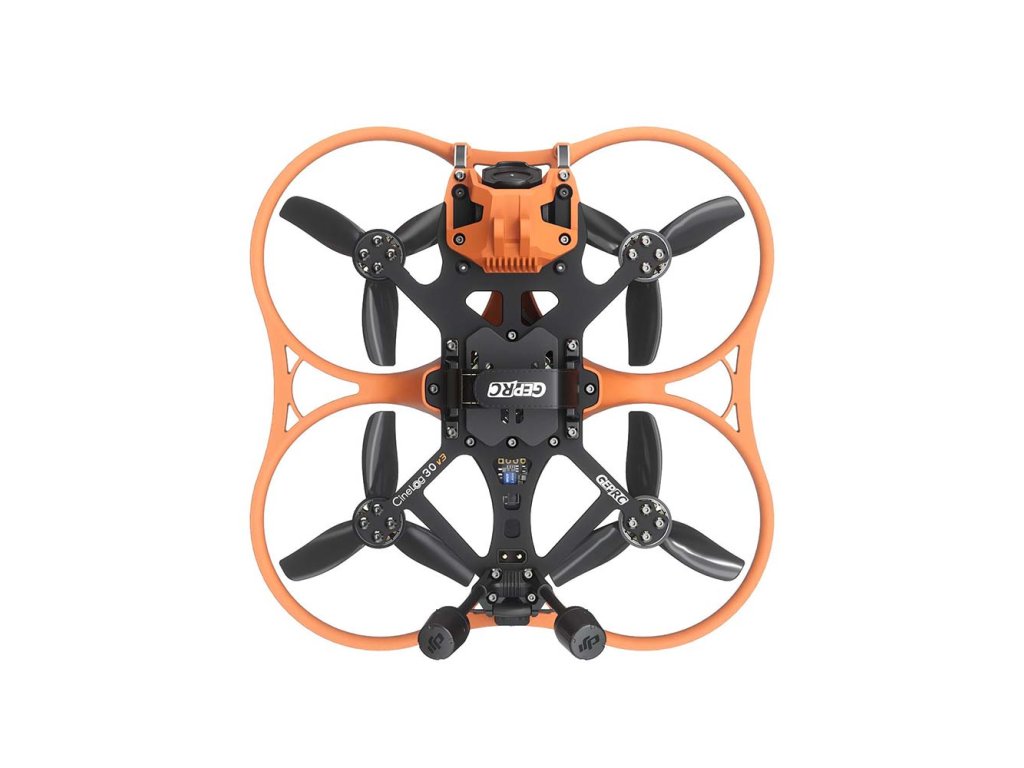 GEPRC CineLog30 V3 O4 PRO 4S ELRS (3" CineWhoop) GEPRC CineLog30 V3 O4 PRO je prémiový 3" Cinewhoop dron navržený pro ultra plynulé, vysoce kvalitní filmové záběry s digitálním přenosem DJI O4 Air Unit Pro. Je optimalizován pro 4S baterie a lety s lehkou HD kamerou (nebo záznamem přímo z O4). Vylepšený rám má zesílené hliníkové prvky a ochrannou konstrukci, která chrání vnitřní elektroniku před nárazy a nečistotami. Díky ochrannému krytu vrtulí (který skrývá LED pásek) je bezpečný pro létání v interiéru nebo blízko lidí. Měkké uchycení kamery tlumí vibrace pro hladké záběry stabilizovatelné v Gyroflow.