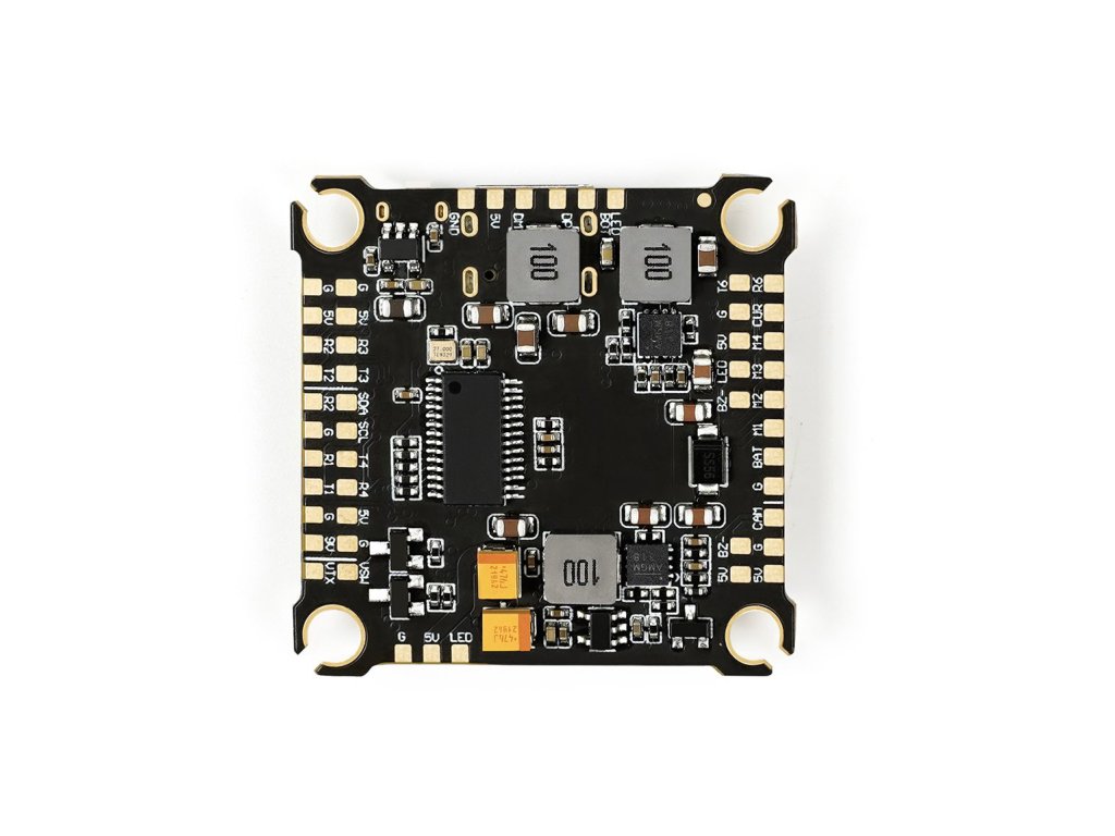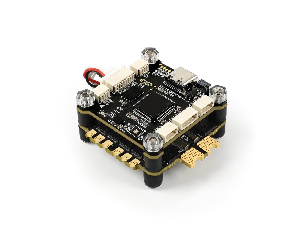 GEPRC TAKER F722 BLS 50A STACK je vysoce výkonný a spolehlivý letový systém, který se skládá z řídicí jednotky (FC) a čtyřkanálového regulátoru otáček (4v1 ESC).