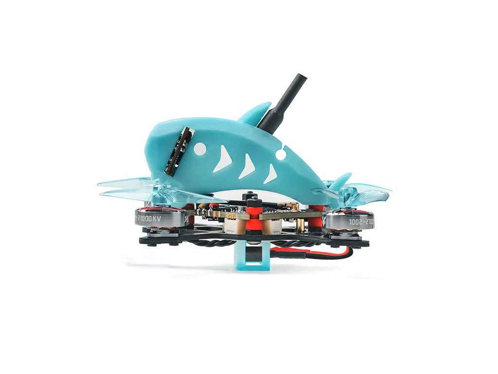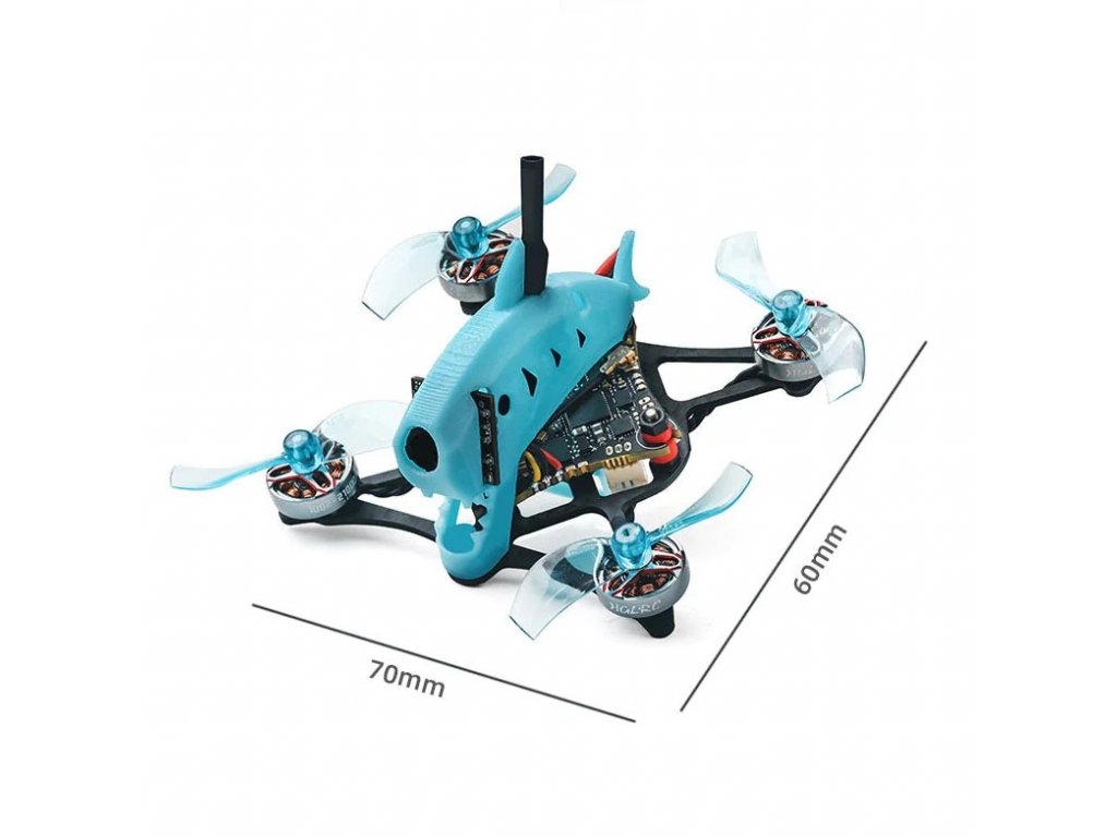 - Kompaktní a lehký: HGLRC Drashark je skutečně kompaktní s rozměry 70 mm na šířku a 60 mm na délku a rozvorem 75 mm.