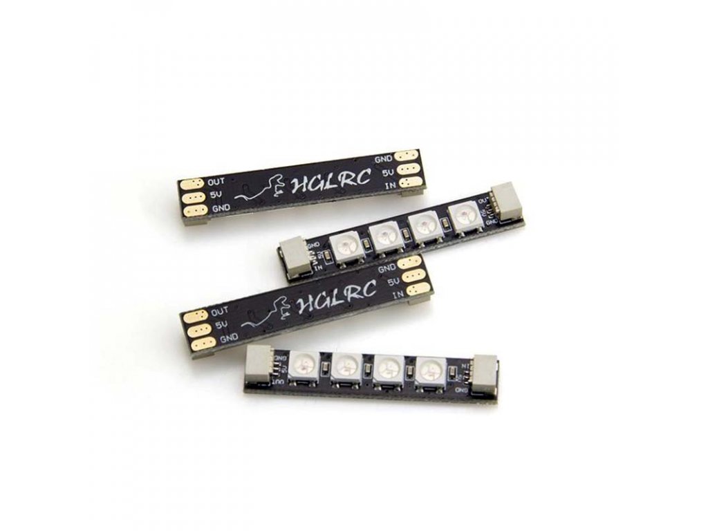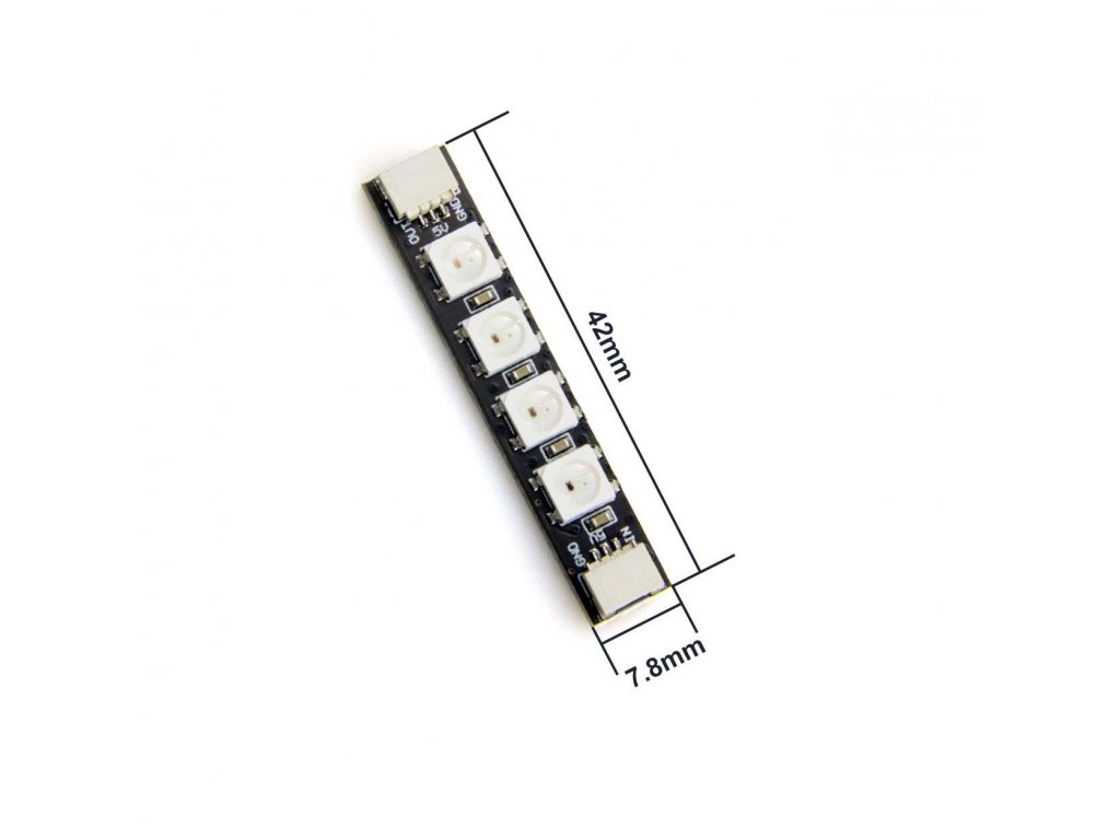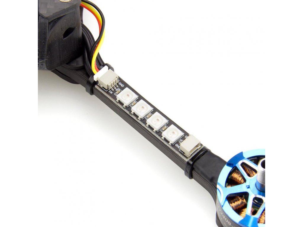 Balení 4 LED pásků WS2812. Na každém pásku jsou 4 LED diody. Pro všechny FPV drony. Nenahrazuje racewire k motorům.