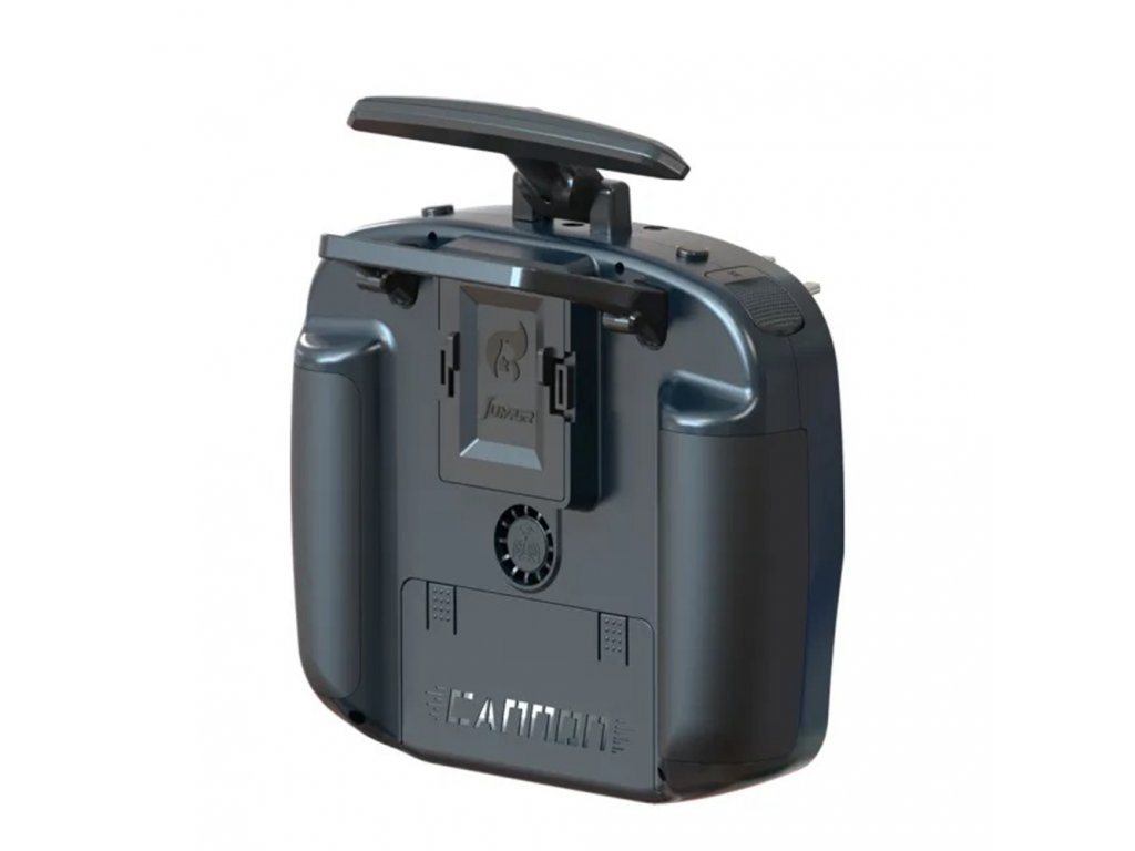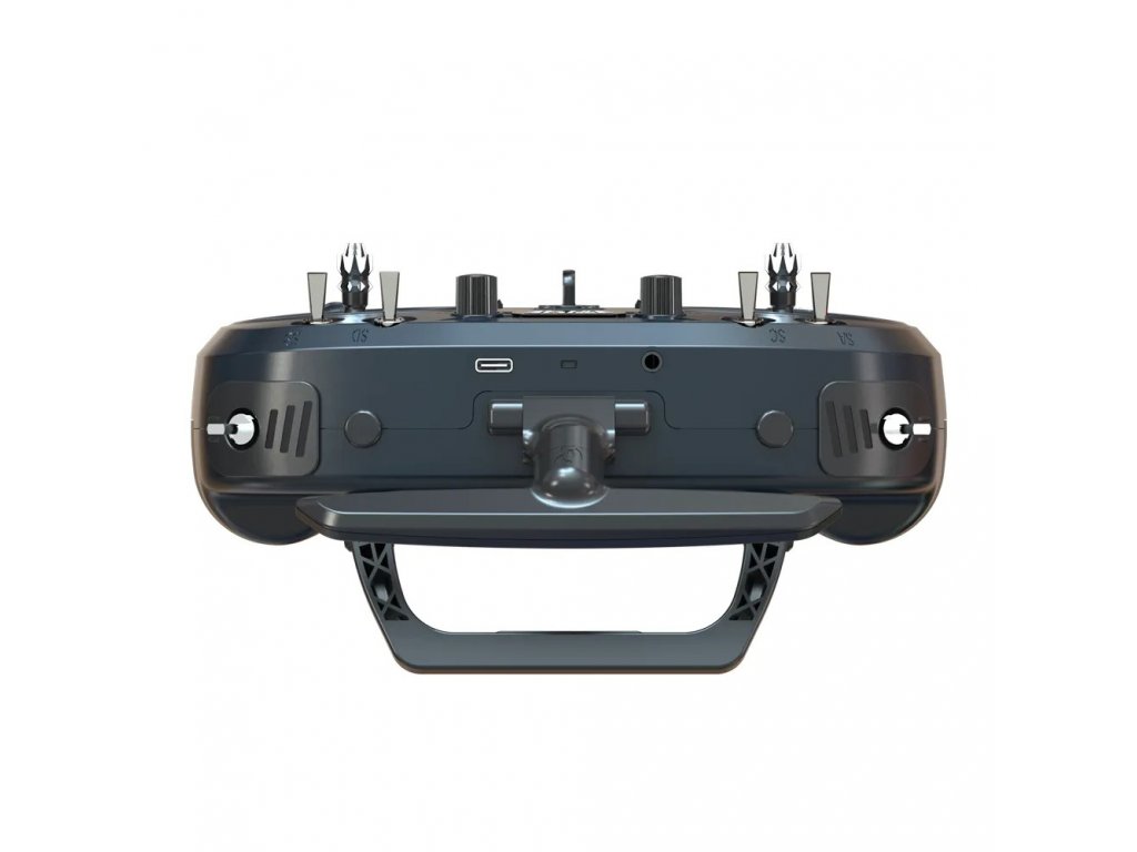 Na zadní straně T14 najdeme sklopné madlo pro snadný transport. Také standardní JR šachta pro rozšíření o externí moduly, řekněme například multiprotokolový modul 4v1. Nechybí ani ventilátor pro aktivní chlazení modulu ELRS. Bateriová šachta pojme dvě Li-Ion baterie (nejsou součástí dodávky) o velikosti 21700 pro dlouhou dobu provozu. Lze je rychle nabíjet přes USB-C konektor. Jumper T14 podporuje 10W nabíjecí výkon. Mimochodem, USB-C lze také použít k připojení rádia k leteckým simulátorům, pokud chcete rádio využít ještě více. Samozřejmostí je FW EdgetX.