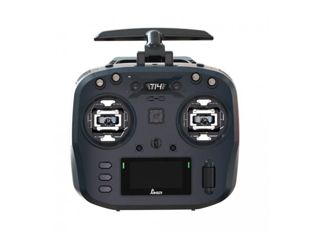 Rádio T14 je kompatibilní s přijímači ExpressLRS (zkráceně ELRS). ELRS je ovládací RC link, který nabízí neuvěřitelný dosah, vysoké obnovovací frekvence, nastavitelný výkon, aktualizace přes wifi a další. ELRS na 2,4 GHz překonává konvenční RC systémy ve všech směrech při zachování krátkých antén. Vysílací modul ELRS použitý v T14 má výstupní výkon až 1000 mW a obnovovací frekvenci až 1 kHz. Anténa na anténě rádia je pohyblivá. Má dva nastavitelné klouby, které umožňují jeho orientaci v libovolném směru. Užitečné pro přizpůsobení polarizace na přijímací anténě vašeho letadla pro další zvýšení síly příjmu.