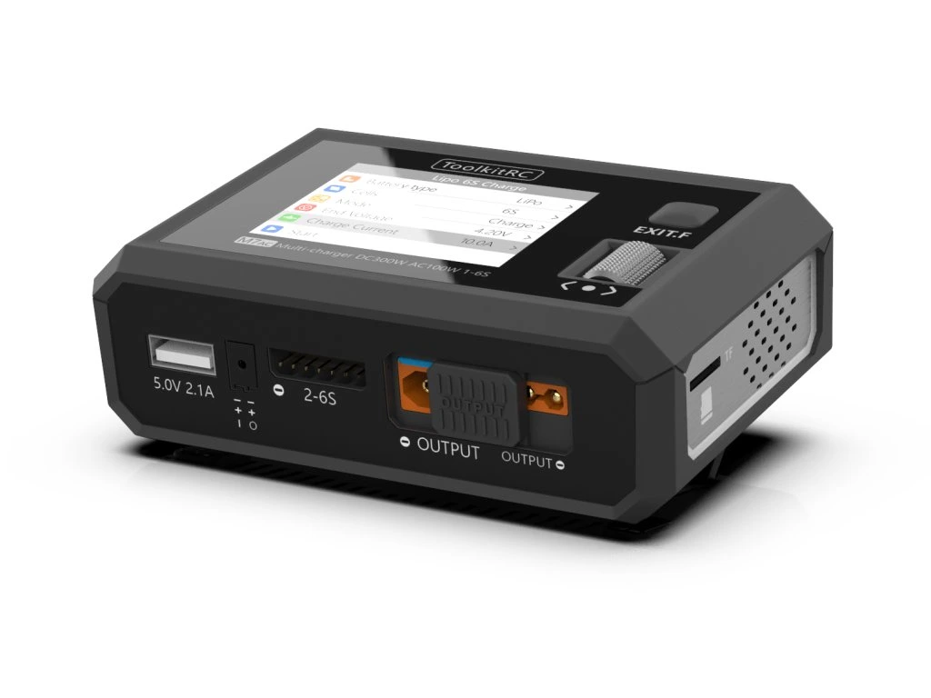 Nejnovější model nabíječky baterií pro vaše FPV koptéry od značky ToolkitRC. Nabíječ kombinuje možnost zapojení do sítě na 230V bez nutnosti síťového adaptéru, tak na externí baterii přes konektor XT60. Dále nabíječka disponuje konektory pro nabíjenou baterii XT60/XT30 - již žádné adaptéry.
