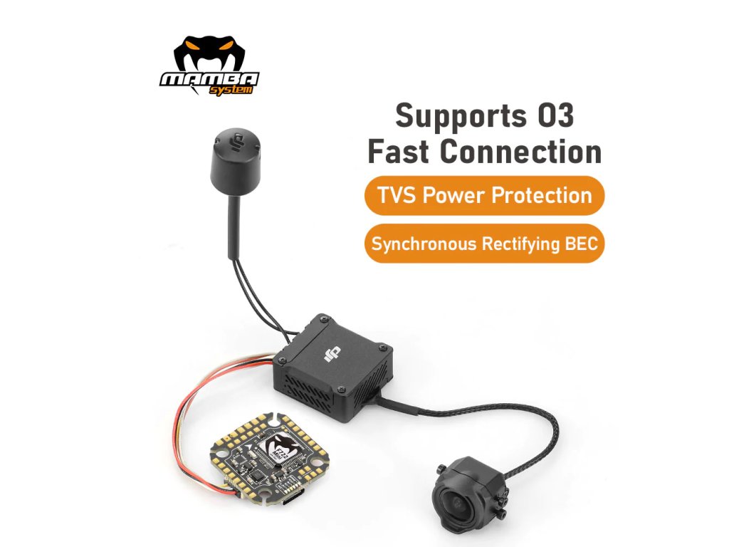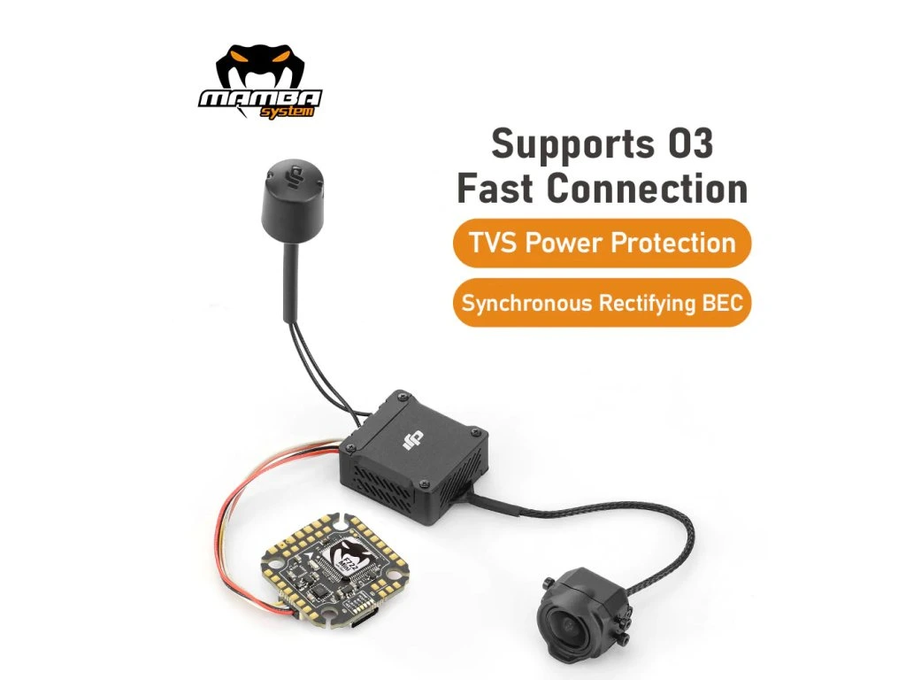 Letová jednotka FC Mamba MK4 F405 MINI s gyrem MPU6000. K FC je možné připojit jednotku DJI O3 nebo jiné digitální přenosové systémy videa. Díky své velikosti se hodí do menších FPV dronů.