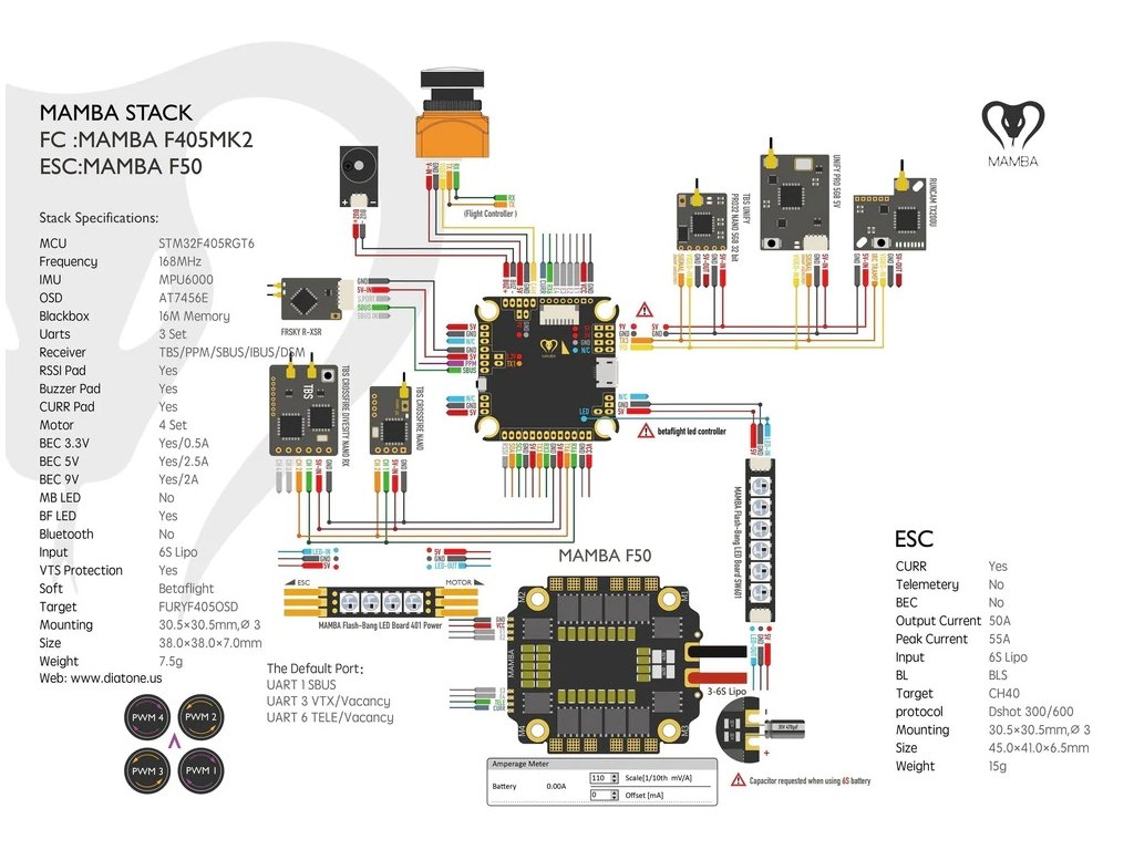 MAMBA Stack F4 MK2 (F405+50A ESC 3-6s)