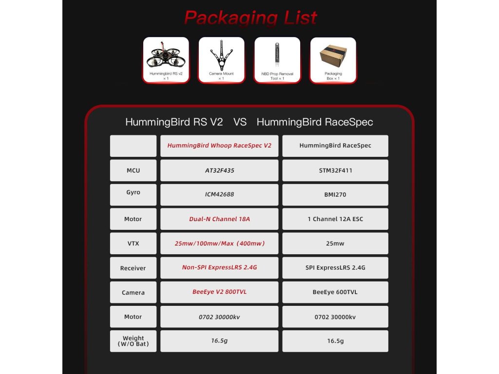 Díky nízké hmotnosti, perfektnímu rozložení komponent a prémiovým funkcím je HummingBird RaceSpec V2 ELRS ideální volbou pro piloty, kteří se chtějí prosadit v závodech nebo upřednostňují extrémní výkon při freestyle průletech v tight-prostorech.