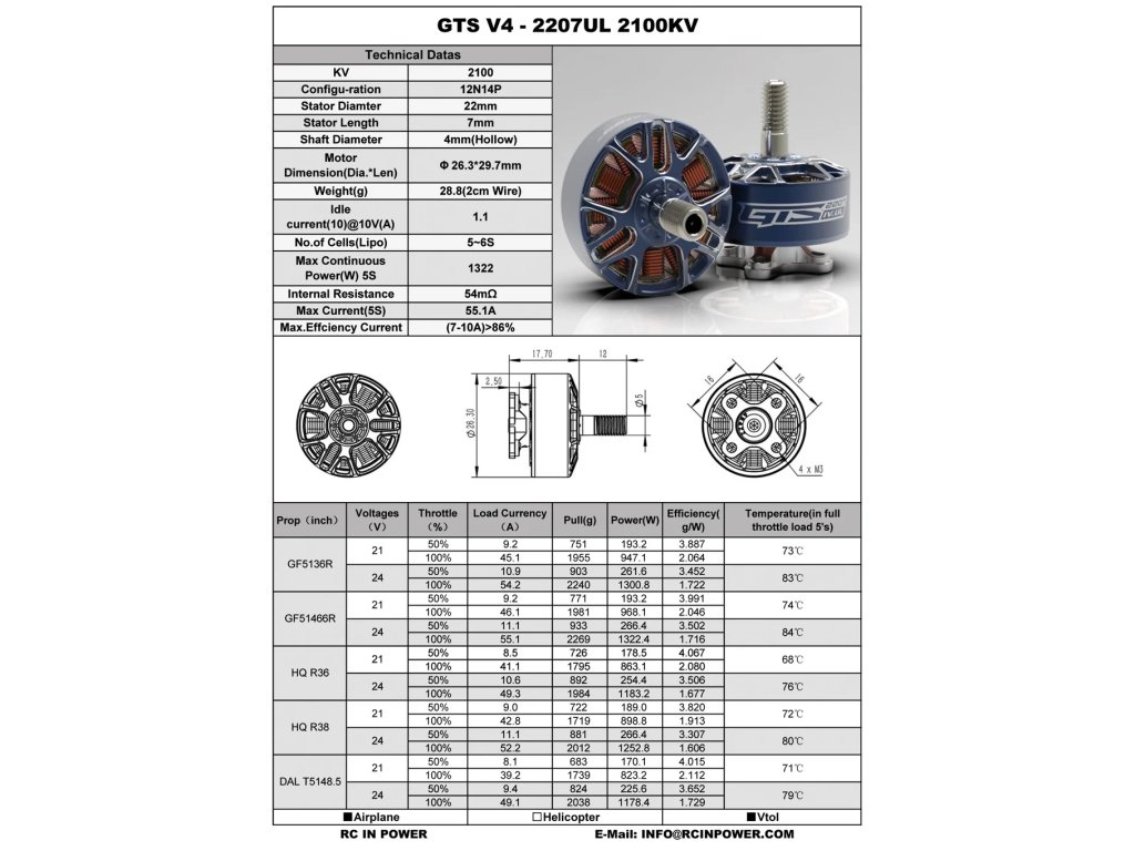 • Motor RCinPower GTS V4 2207 UL 2100 KV