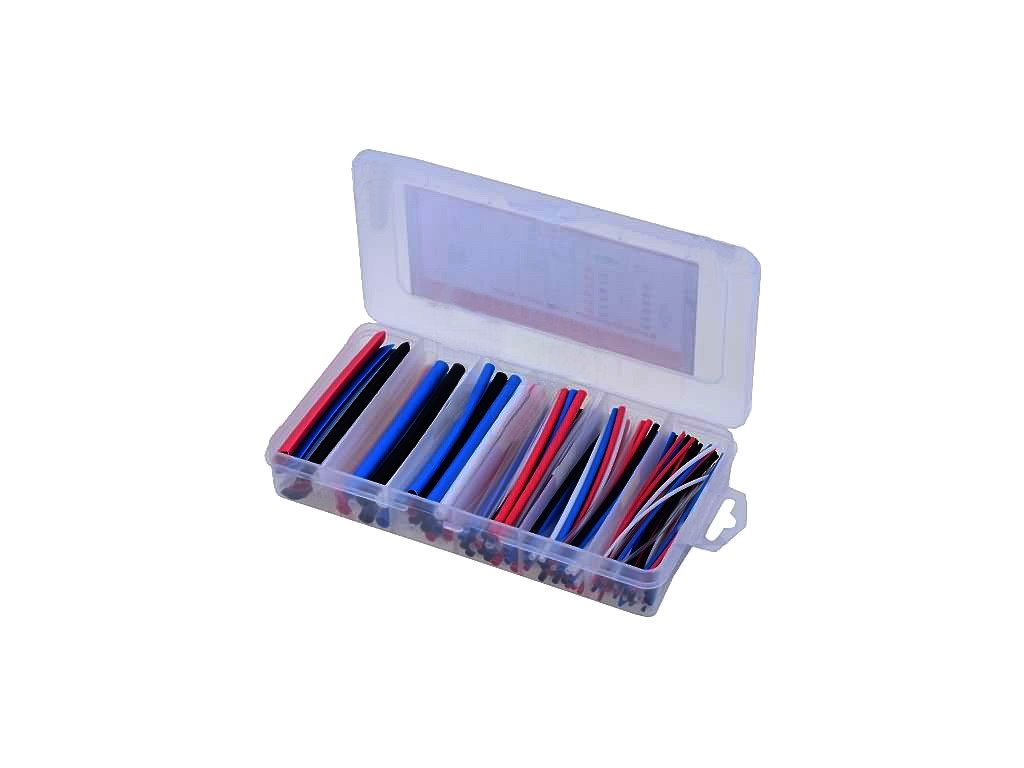Vícebarevná sada. Délka 100 mm, poměr smrštění 2:1, materiál polyolefin, množství 170 kusů.