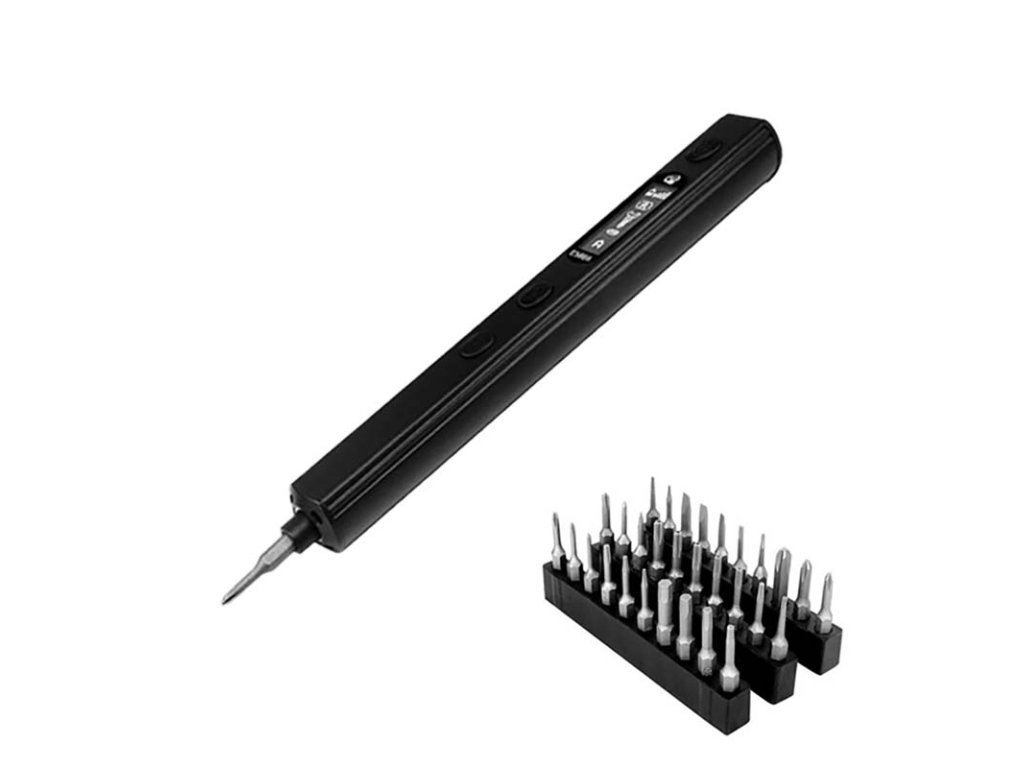 Sequre ES666 je inteligentní elektrický šroubovák určený pro jemnou elektroniku, opravy dronů a RC modelů. Je vybaven integrovanou baterií 600 mAh, která poskytuje přibližně 3–4 hodiny provozu bez zátěže. Na OLED displeji 128×32 px lze sledovat stav baterie, režim provozu i zvolený krouticí moment. Šroubovák nabízí 7 úrovní nastavení momentu a rychlost až 250 ot/min, takže umožňuje přesnou i rychlou práci.