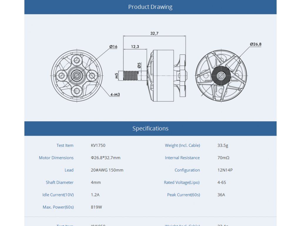- Rozměr motoru: 26,8 * 32,7 mm