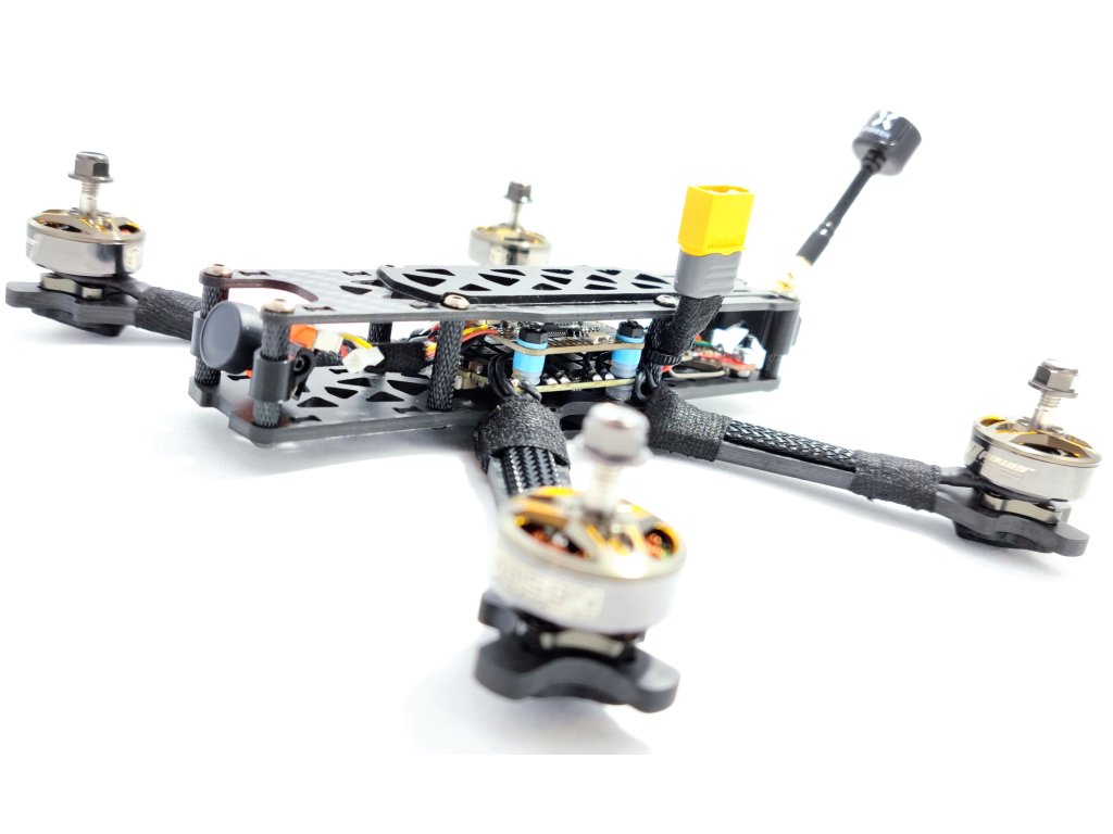 Plně sestavený a nastavený dron s kvalitními komponenty v analogové verzi. Set obsahuje 3D tisk , držák antény, kamery a ochranu ramen při přistání. Rám je oproti originálu snížen na výšku 2cm (vnitřní prostor pro stack).