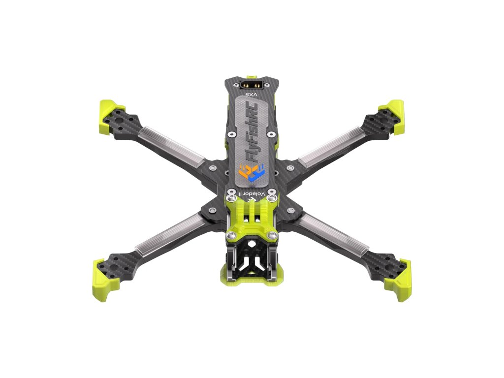 Volador II VX5 Frame si zachovává vysokou kompatibilitu a jednoduchý konstrukční design, vybavený nezbytným příslušenstvím pro snadnou, pohodlnou a organizovanou montáž. Volador II VX Frame je dodáván v konfiguraci Squashed X pro maximální kontrolu. Je kompatibilní s řadou analogových a HD systémů na trhu a nezávisle odnímatelné rameno a design pevně sedící konstrukce minimalizují rezonanci rámu. Vysoce kvalitní díly TPU jsou chytře navrženy pro integrovanější a úhlednější instalaci. Speciálně pro instalaci kamery DJI O3 Air Unit (Walksnail Moonlight apod..) je zde navržená silikonová vložka desky pohlcující otřesy, která eliminuje jakékoli možné jello ve vašem DVR a zároveň je kompatibilní s kamerami formátu 19 mm/20 mm. Rám je vyroben z vysoce pevných CNC dílů z hliníkové slitiny a karbonových plechů T700 nejvyšší kvality, se super hladkým povrchem a jednotnými zkosenými hranami. Přepracovaná bateriová podložka s přidanou mřížkou má nyní ještě lepší protiskluzový efekt a používá silnější lepidlo. Konektor XT60 integrovaný v zadní části rámu eliminuje pravděpodobnost poškození napájecího kabelu oporami při havárii a zároveň umožňuje snadné připojení baterie jednou rukou.