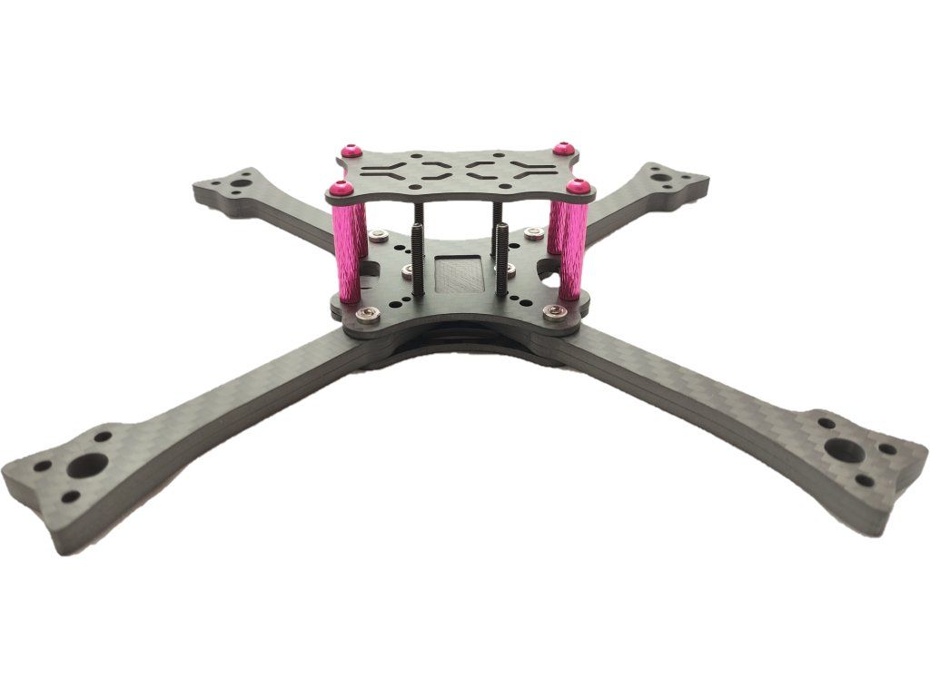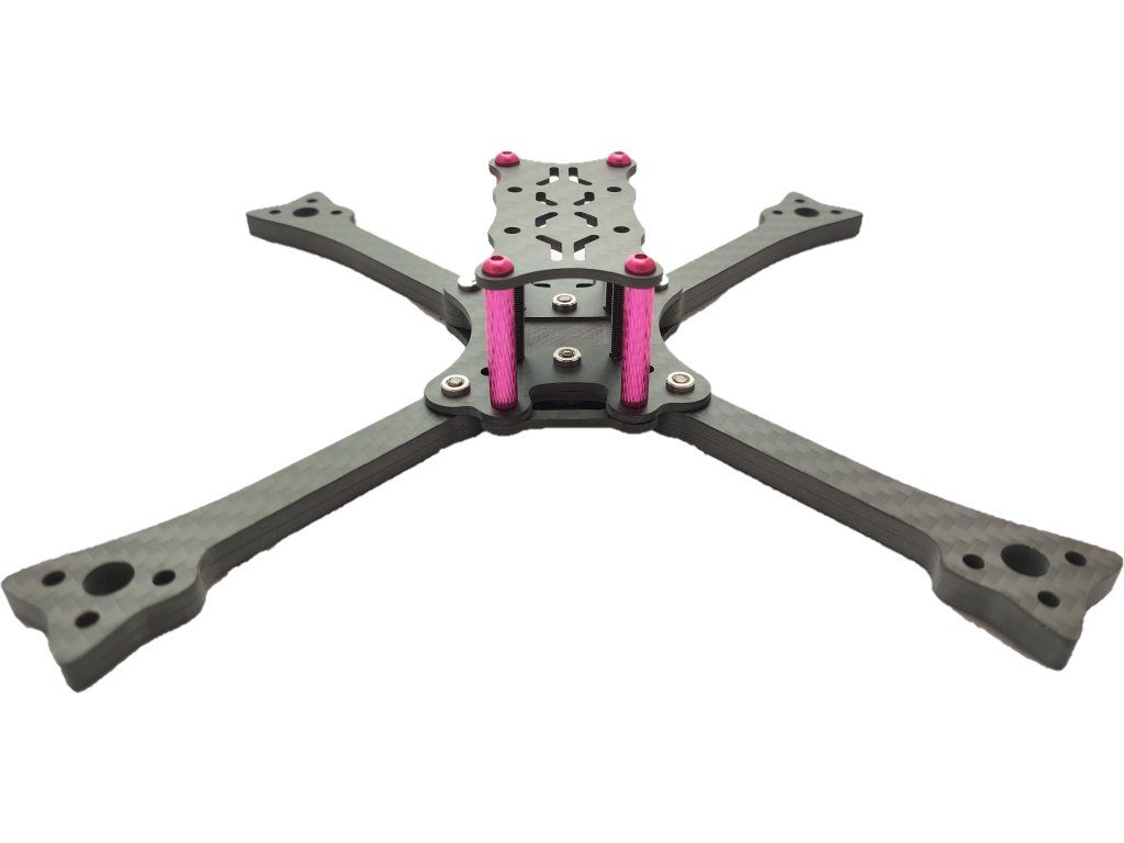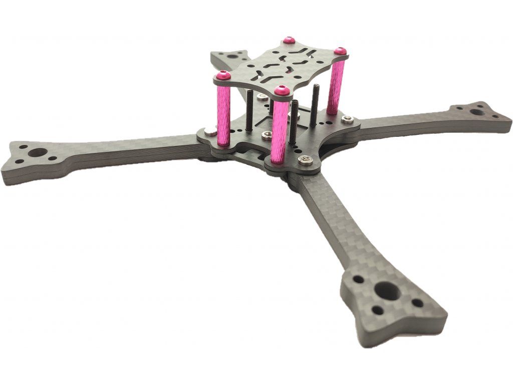 Tento závodní FPV rám vyniká svojí odolností a pevností díky kvalitnímu karbonu T700. Tělo rámu kryje veškerou instalovanou elektroniku uvnitř (ESC, FC, HDZERO apod...). Ramena o síle 6mm zajistí dostatečnou tuhost a odolnost. Jednoduchá a rychlá výměna ramene, které je uchyceno na dvou šroubech. Ramena jsou spojena svým tvarem do kříže a tím je vymezena veškerá možnost pohybu a následných vibrací celého rámu. Díky velkému množství dostupných 3D tištěných doplňků je možno rám osadit jakýmkoliv typem kamery a antény.